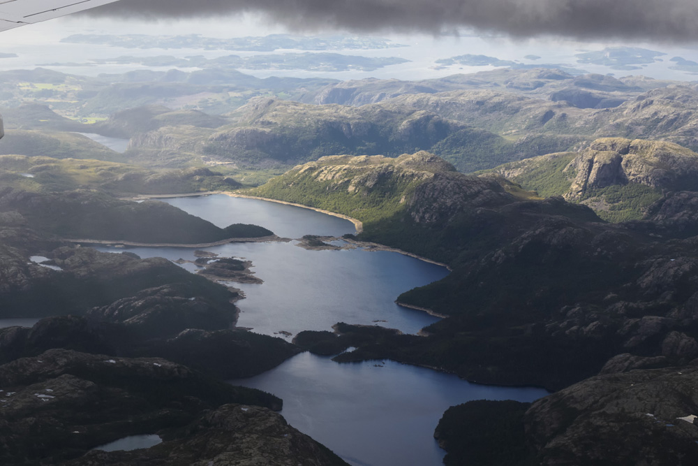 Норвежские фьорды во время перелета из Осло в Ставангер и обратно.