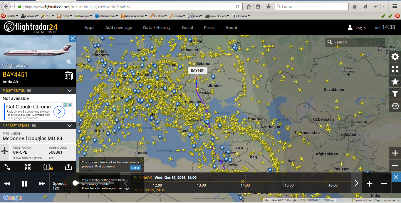 Я не заметил, что в обе стороны, сорри. Если с севера на юг, то именно там лучший ветер. Почему с юга на север так направляют, у меня есть некоторые подозрения. Но они с погодой здесь не связаны. Возможно в том секторе черного моря проводятся военные учения или спецоперация (хотя в новостях особо не видно). Либо проблема с радио-навигационным оборудованием на участке над морем. Хотя, первое было бы логичней.converj писав:та я не против )))AQS писав: Что не заметно? Именно над этим куском на эшелонах наиболее сильный попутный ветер.