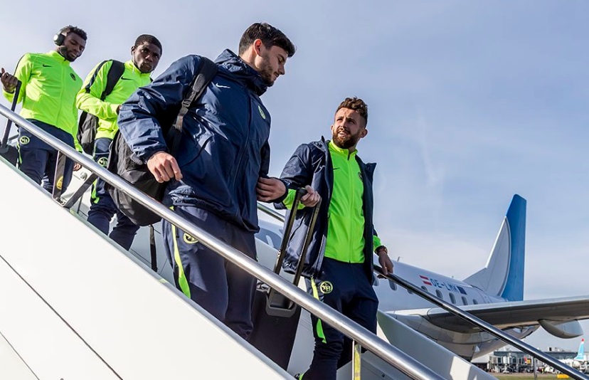 Zullte Waregem команду привезли на 738 от TUI, оставили и пригнали другой борт 738 OO-JLO от TUI. До этого команда использовала польский 738 Enter air и съездила на матч на автобусе.