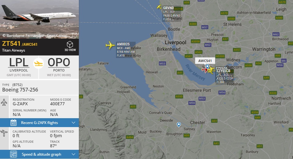 Ливерпуль перелетел в Порту на матч ЛЧ. Использовали Titan Airway B757, G-ZAPX, полностью бизнес класс.