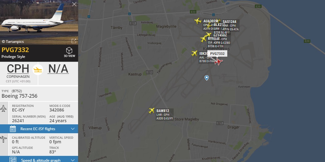 В 10.30 команда Кобенхавн вылетела в Мадрид на матч против Атлетико. Команда использвала В757 от испанской Privilege Style.