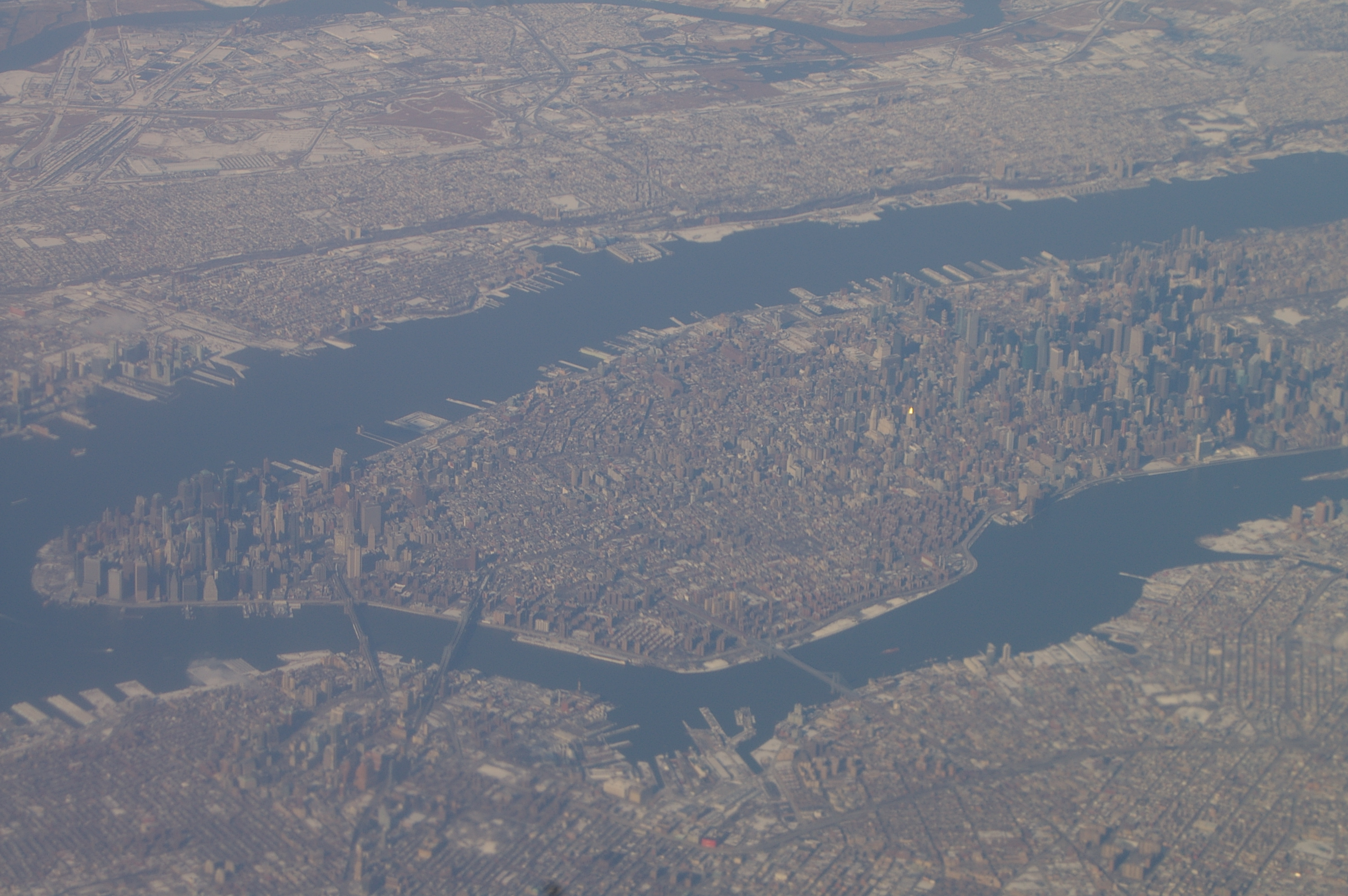 Часть Бруклина и Квинса на переднем плане и практически весь Манхеттен: до "сотых" улиц. Вверху кадра--Нью Джерси--"другой мир" по мнению жителей Большого Яблока.