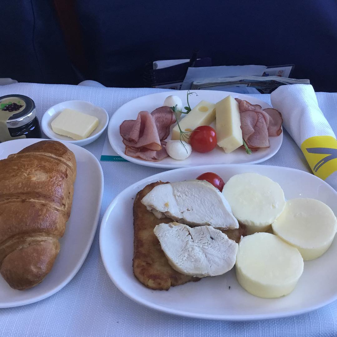 KLM AMS-KBP вылет в 9:25, сендвич в виде горячего круассана с чем-то внутри (даже не понял, с чем), потом ещё был традиционный маленький мини-маффин.