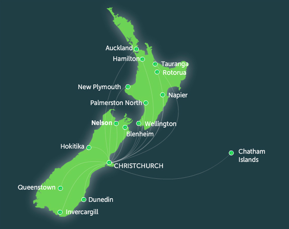 Как бы это смешно не звучало, но к нам Новая Зеландия ближе подходит. Вот пример направлений по домашним направлениям из Крайсчерча, для Окленда и Веллингтона не нашел такой карты.