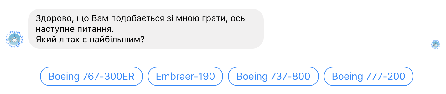 Трохи вивчав можливості чат-бота МАУ та натрапив на гру на тему історії МАУ.