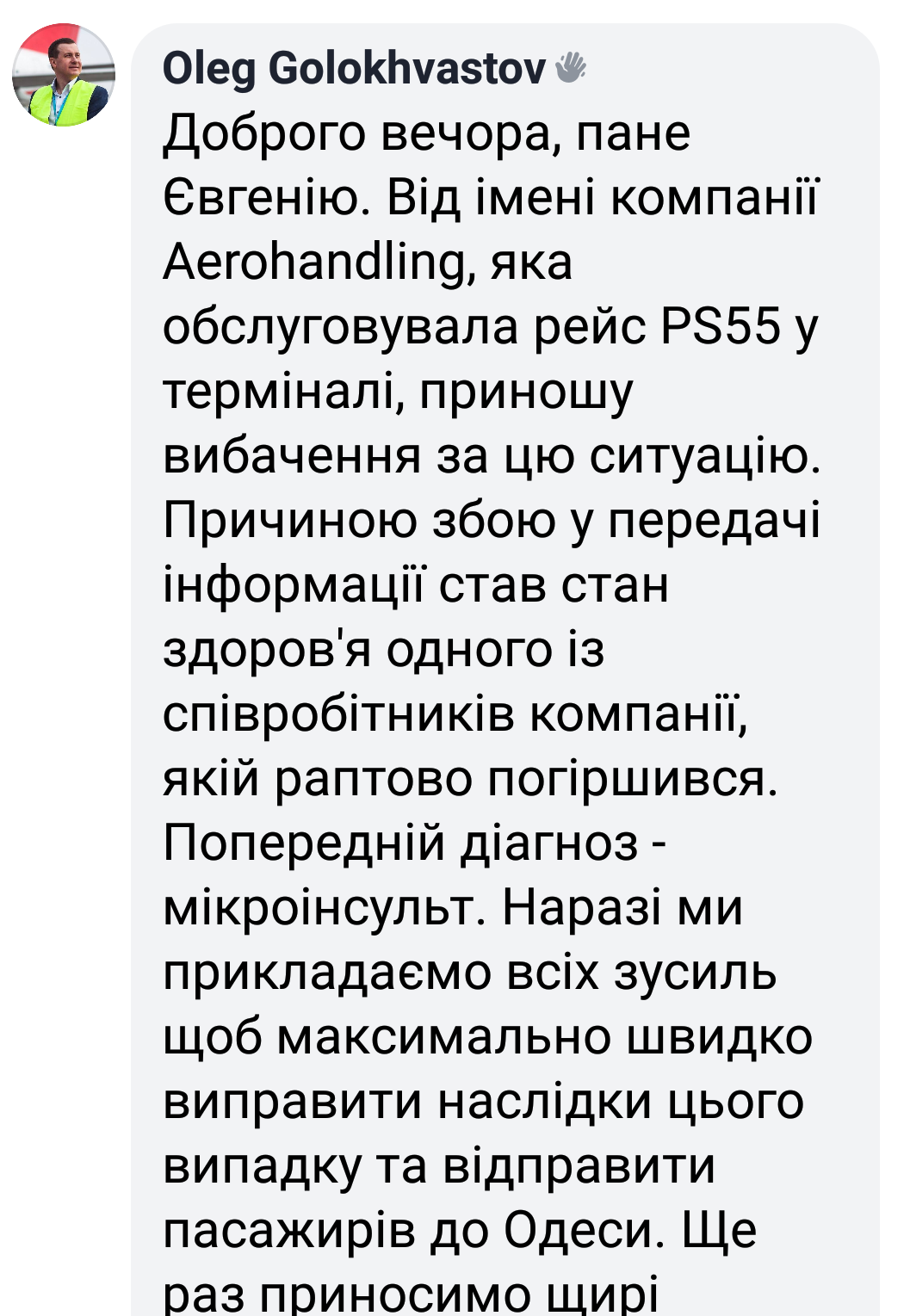Нам дуже прикро за ситуацію, яка склалася, та за ті незручності, з якими зіткнулися наші пасажири.
