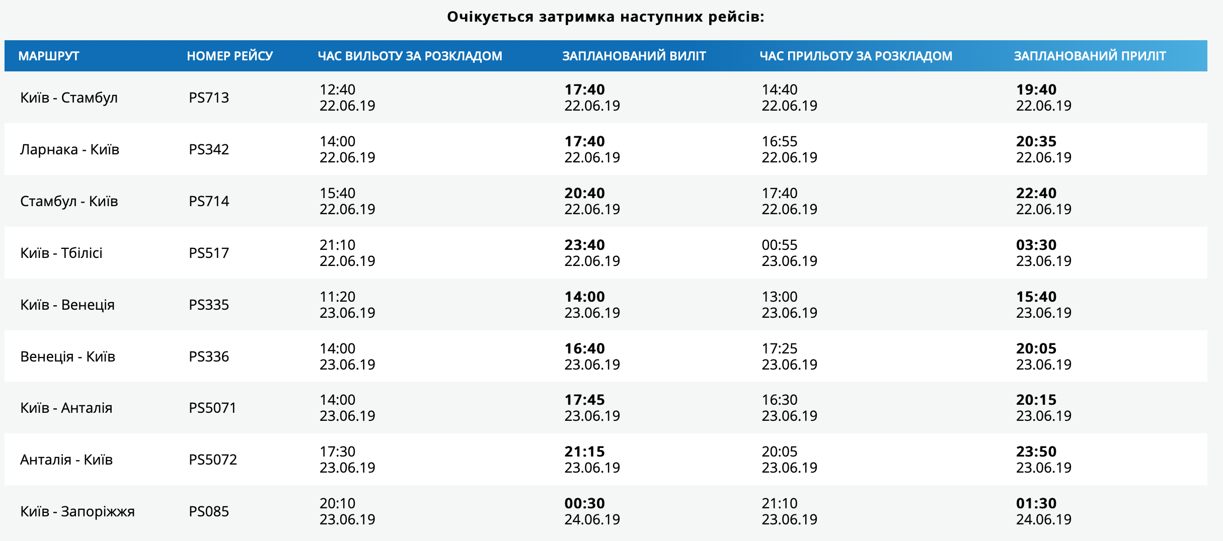 На данный момент 2 борта МАУ идут с опозданием, один на 3 часа, один на 5 часов. При этом сегодня (22.06) ночью эта задержка приходит в норму. Рейс в Тбилиси прилетает вовремя, чтобы без задержки выполнить обратно утром рейс в Киев. Но! 23.06 начиная с дневной волны опять начинаются задержки, при чем это уже известно наверняка заранее. Как-то не по человечески получается. Рейсов просто больше, чем доступных бортов. Можно очередной раз сделать вывод, что украинские АК к высокому сезону не готовы. Как Скайап, у которого прямо сейчас 3 борта идут с большим опозданием, так и МАУ. Про остальных браянов и вспоминать не хочется.