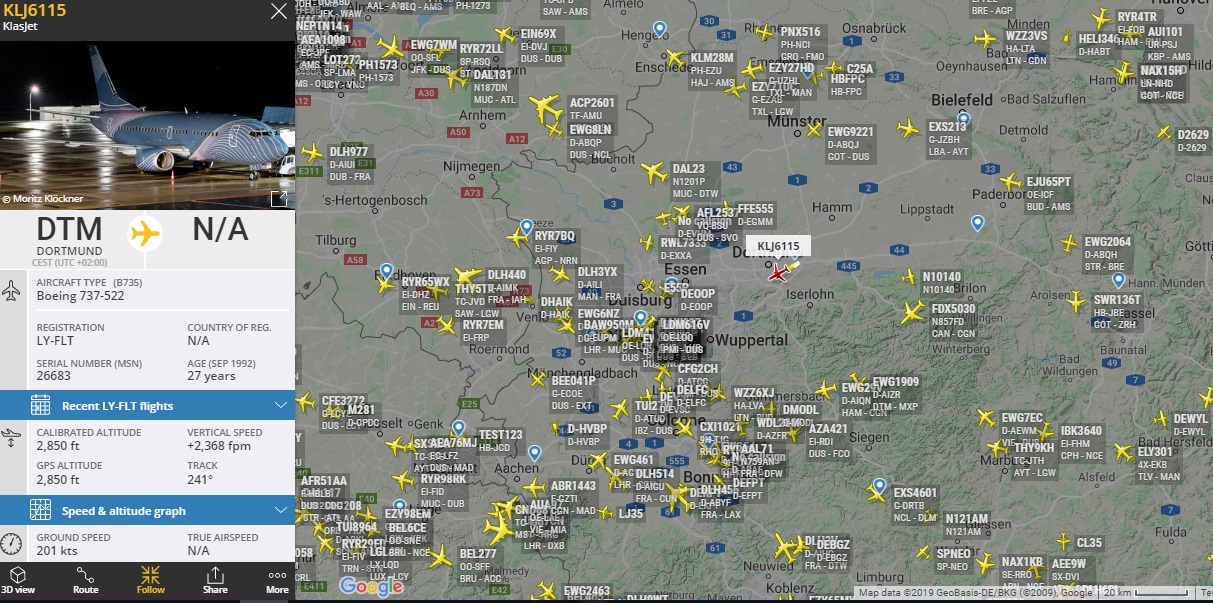 Borussia Dortmund - B735, Klasjet. Команда летела двумя бортами В735 в бизнесе для команды. А320 D-AIZR (фирменный борт команды) для пооддержки.