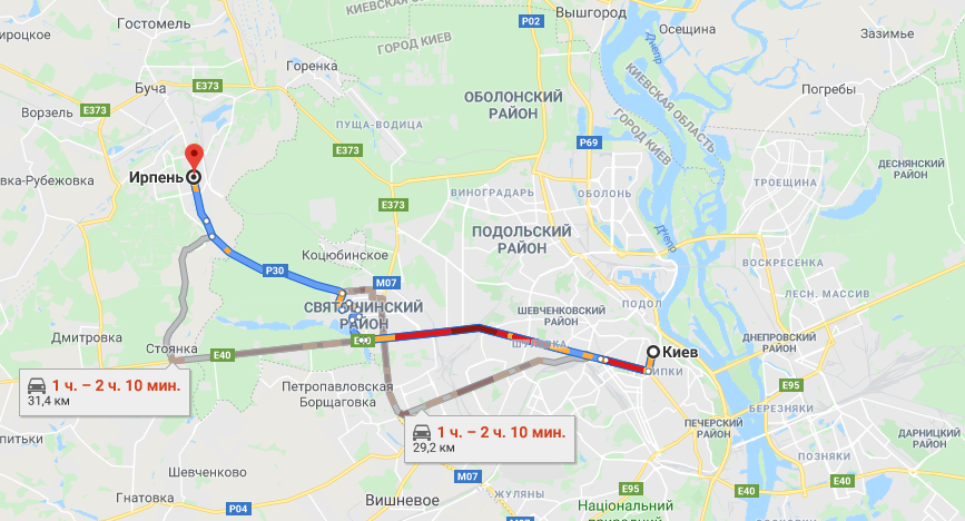 Зря. Прямо сейчас тот же маршрут Киев-Ирпень (центр-центр) 34 минуты. До Житомира (центр-центр) 1ч 41мин. Дорога там просто отличная, так что на самом деле будет меньше.