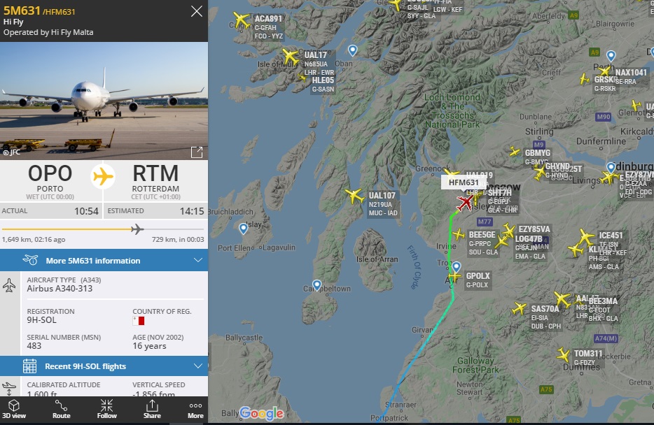 Porto - A343, HiFly. Команда часто с данным перевозчиком. Вторую игру на данном вс 9H-SOL
