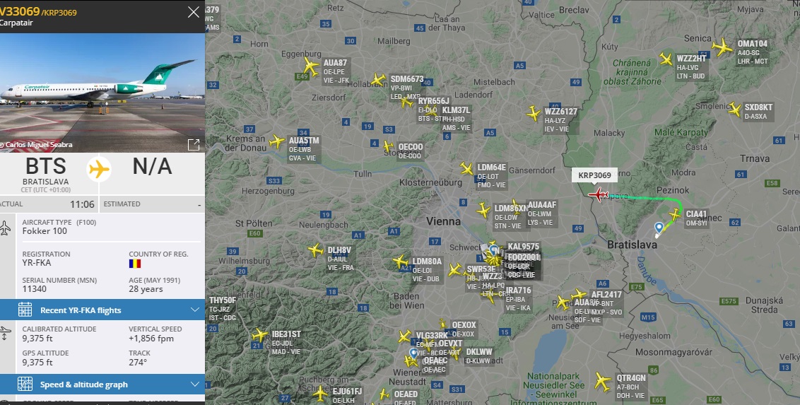 Slovan - Fokker 100. Carpatair. Команда с разными перевозчиками.