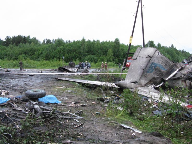 Ту-134А-3 авиакомпании "РусЭйр", вылетевший из Москвы в 22.30 мск понедельника, жестко сел на автотрассу в километре от аэропорта Петрозаводска, фюзеляж развалился, произошел пожар. Число погибших в катастрофе самолета составило, по данным МЧС, 44 человека. По уточненным данным, всего на борту находились 52 человека, восемь из них госпитализированы в тяжелом состоянии.