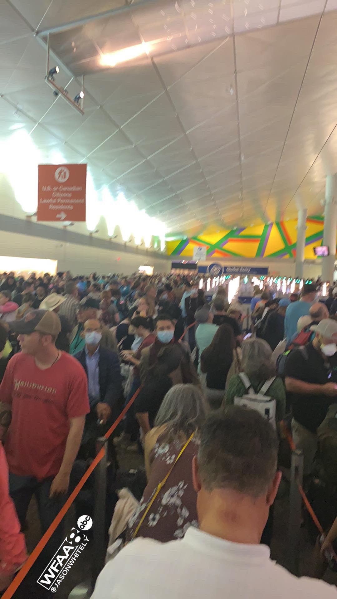 Во всех аэропортах США, куда сейчас можно прибывать иностранцам и гражданам США. Очередь на прохождение паспортного и таможенного контроля - по несколько часов, вплоть до 6 часов судя по отзывам. По мнению Трампа, такие очереди - лучшая защита от коронавируса. Ведь этого нельзя было предсказать, да?