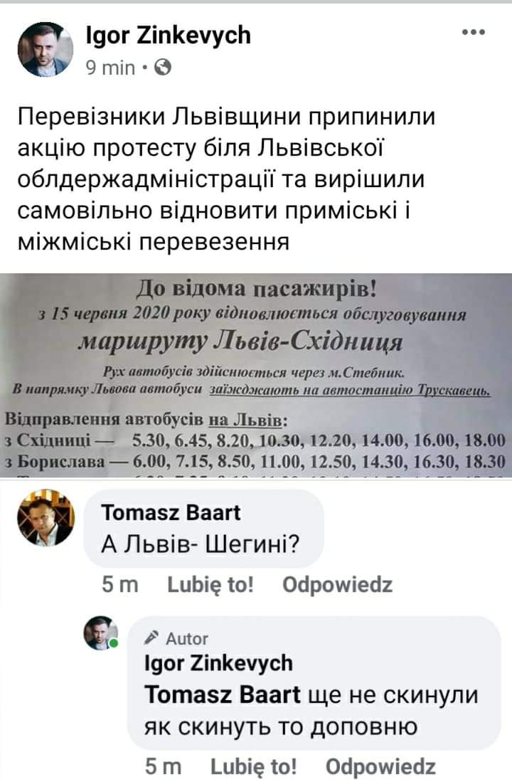 «Сьогодні говорив з головним санітарним лікарем, який пообіцяв мені, що на засіданні комісії з питань ТЕБ і НС мають якісь послаблення пропустити. Така ж сама ситуація, як і у вас, є в аеропорту. Якщо подивитись, що робиться на Шегині-Медиці, то там катастрофа. Там сотні людей пробують перейти кордон, не дотримуються правил. Якщо б відпустити аеропорт, дати можливість літакам нормально літати, то там би цю всю ситуацію можна було б контролювати», — додав мер.