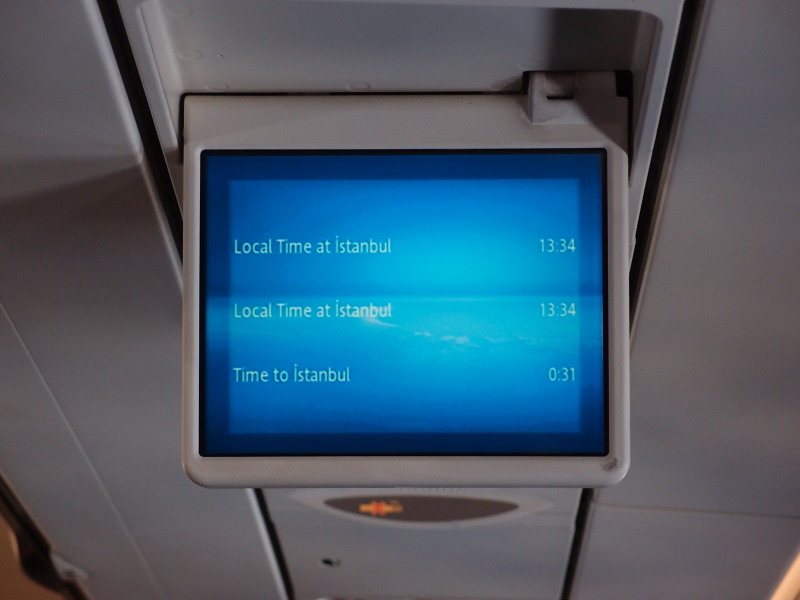 Борт A319 TC-JLP c роскошным просто расстоянием между сидениями. В бизнесе летел один человек, загрузка эконома на глаз около 70%. Из развлечений не было ничего, даже журналов. Хотя нет, была пресса на турецком.