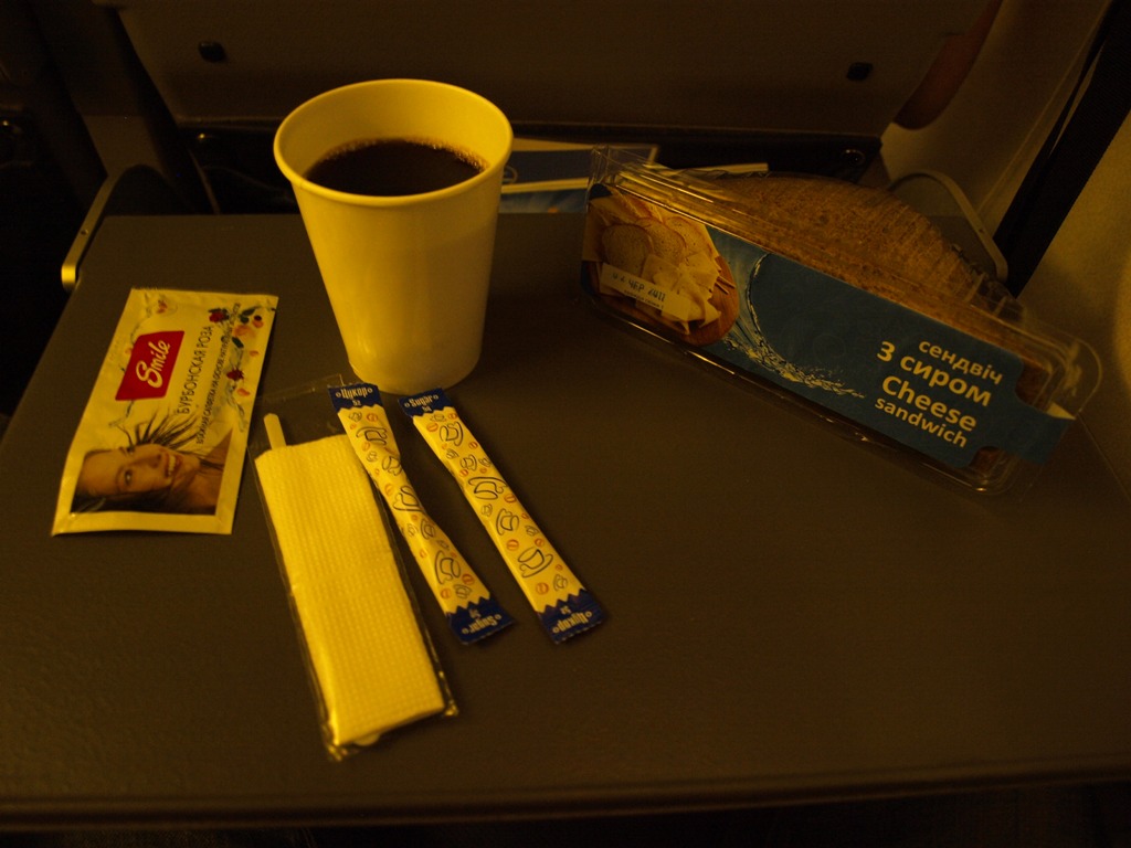 З їжі — бутерброд та желе на десерт. Брав пепсі та каву. На політ такої відстані — якраз.