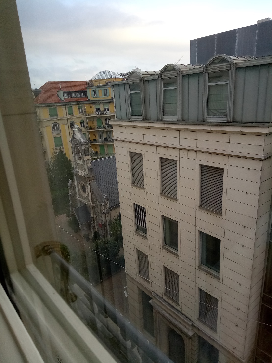 И виды из окна моего номера. Разговорился с рецепшионисткой живущей родом из Молдовы и живущей недалеко во Франции. Он подарила мне книгу об отеле и провела экскурсию по дорогим номерам с видами на озеро.