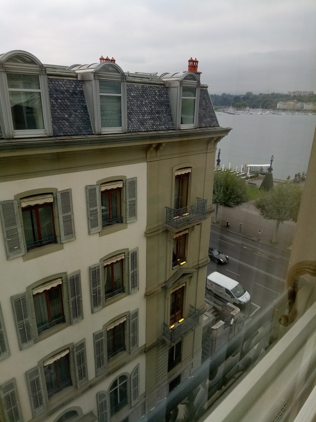Сам отель. Красивые виды на Женевское озеро и саму Женеву. Поднялся ветер и фонтан временно отключали. Продолжение следует.