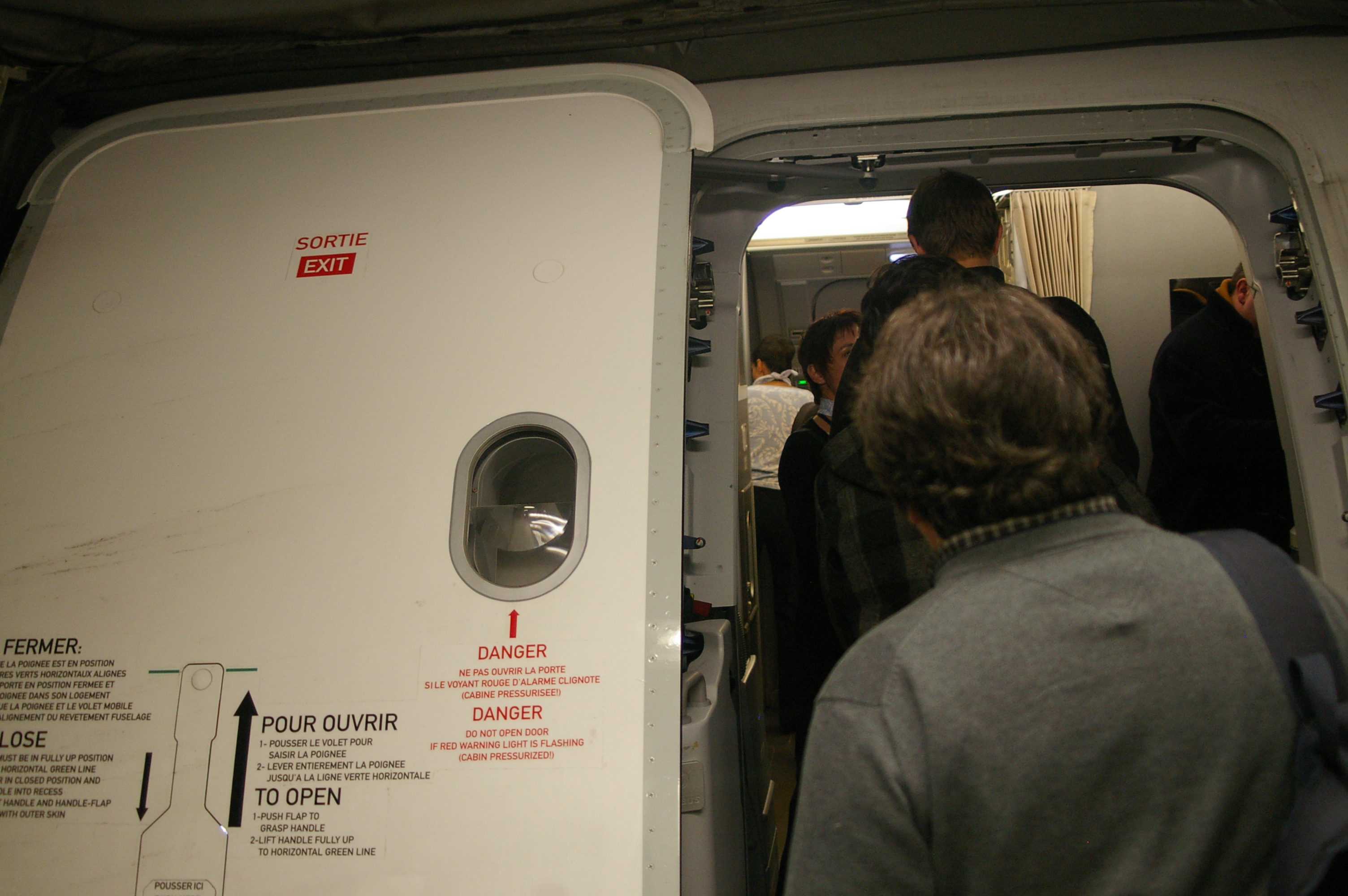 Літак як літак. Чимось нагадує 757. Розташування сидінь 2-3-2 чи 2-4-2 вже не памятаю зараз. Виходить досить зручно, якщо сидіти на одному з двох бокових. В порівнянні з американськими компаніями ЕрФранс відрізняється кращою їжою і можливо трохи привітнішими стюардессами.