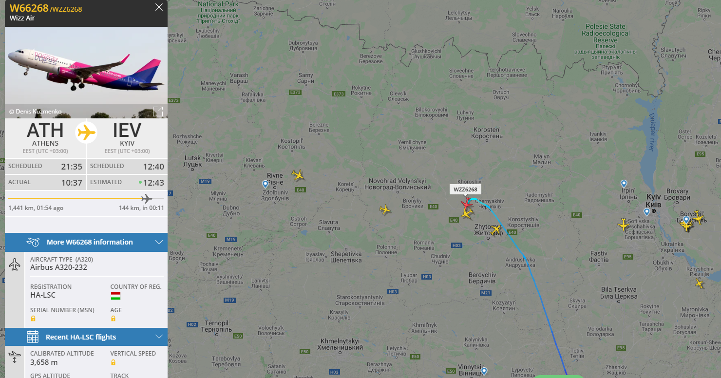Визз Афины - Киев ушел к Житомиру наматывать круги, а вот Bees Ираклион - Киев похоже залетел в цейтнот...)