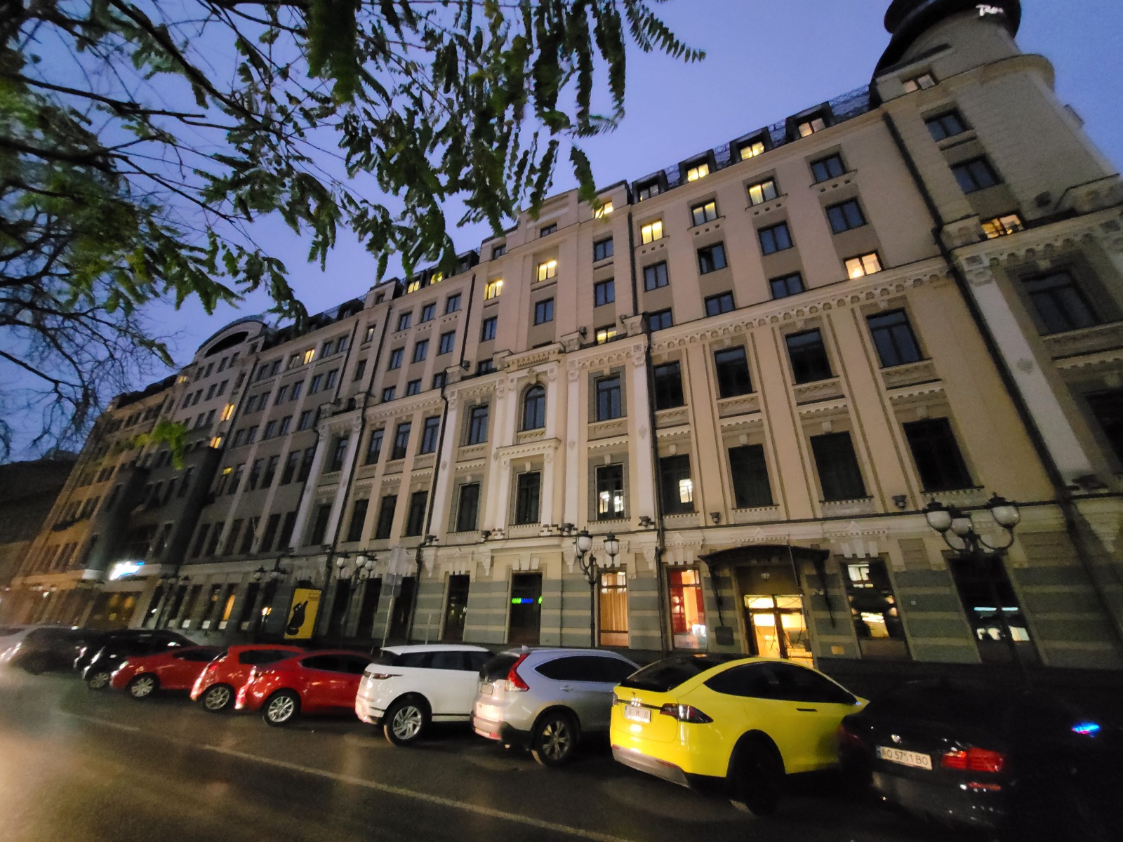 Отель достаточно дорогой как для украинских 4-х звезд, но сейчас там ремонтируют фасад, и все номера по-сути без вида из окна. Свет поступает через ткань, которой прикрыты строительные леса, и можно даже немного разглядеть, что там за окном. Может, из-за этого тарифы немного опустили.