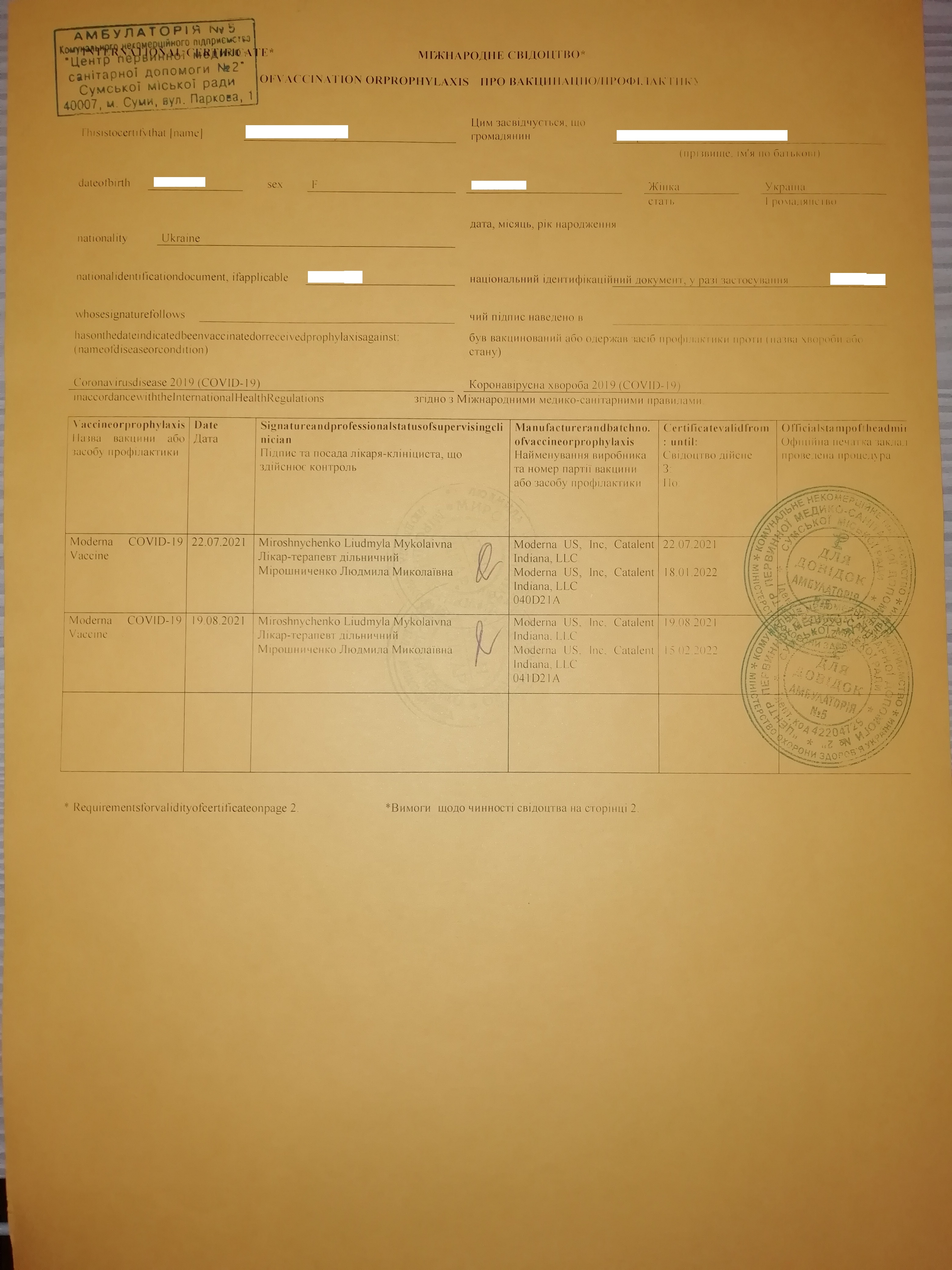 1. Лишь бы ФИО, название вакцины и дата второй дозы были видны. Остальное - никому не интересноaleksandr.nekrasov писав: ↑08 вересня 2021, 13:06 1). Не расставлена табуляция в английском тексте в распечатанном сертификате, т.е. текст вроде как верный, но он без пробелов.