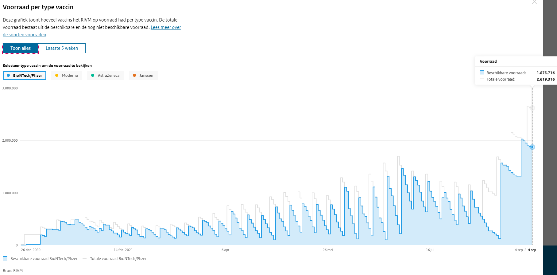 Ось динаміка заповнення Нідерландських складів одними лише мрнк-вакцинами (більше 4млн доз):