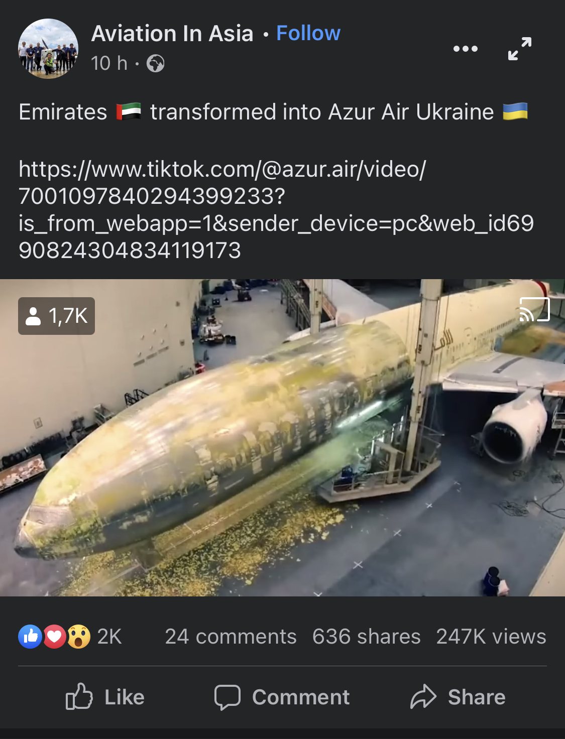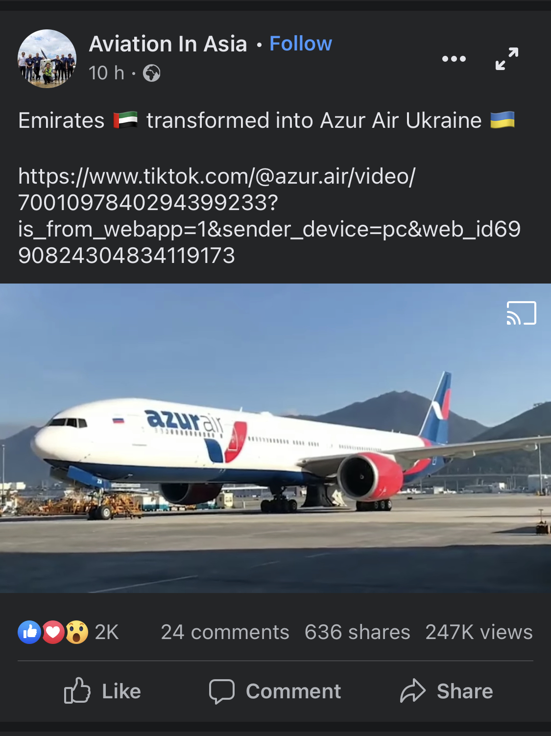 Цей пофарбований в російську ліврею теж, але написали Azur Air Ukraine тому можливо щось знають..