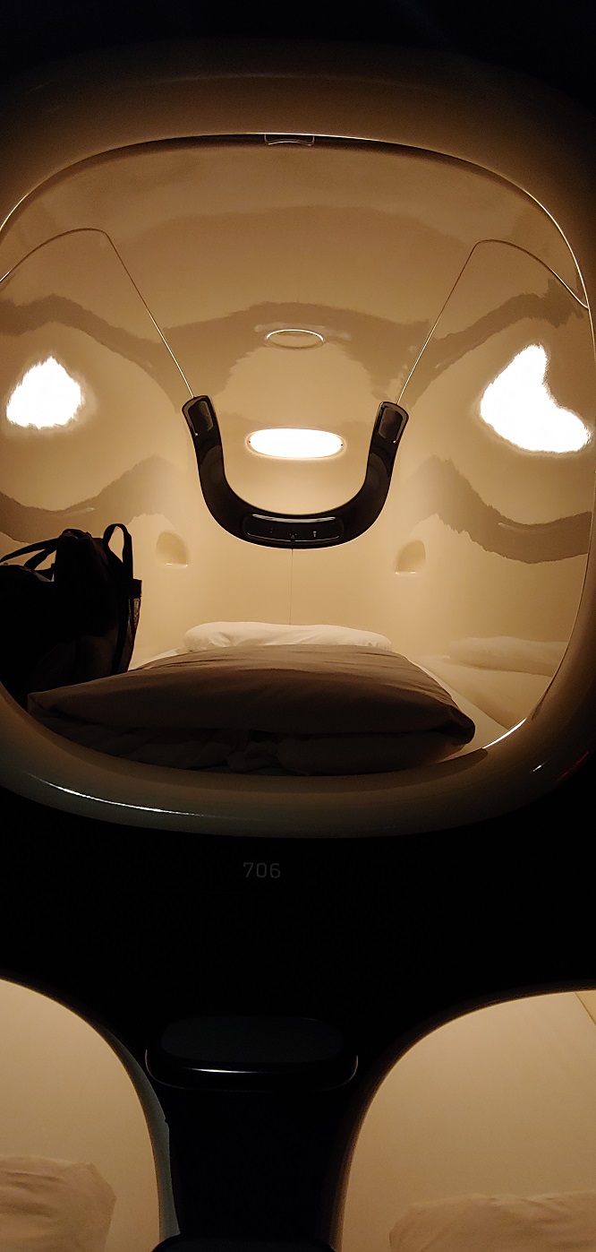 Токио - это уже само по себе необычный опыт ) Такие кабинки - это что-то из фантастических фильмов про космические перелёты, уж слишком плотно расположены и тесно. Интересно, они в Азии полноразмерные или под китайца?
