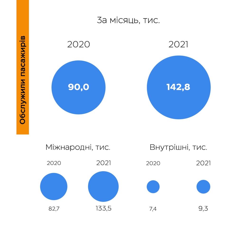 Збільшили міжнародний пасажиропотік на 61% у порівнянні з аналогічним періодом 2020 року.