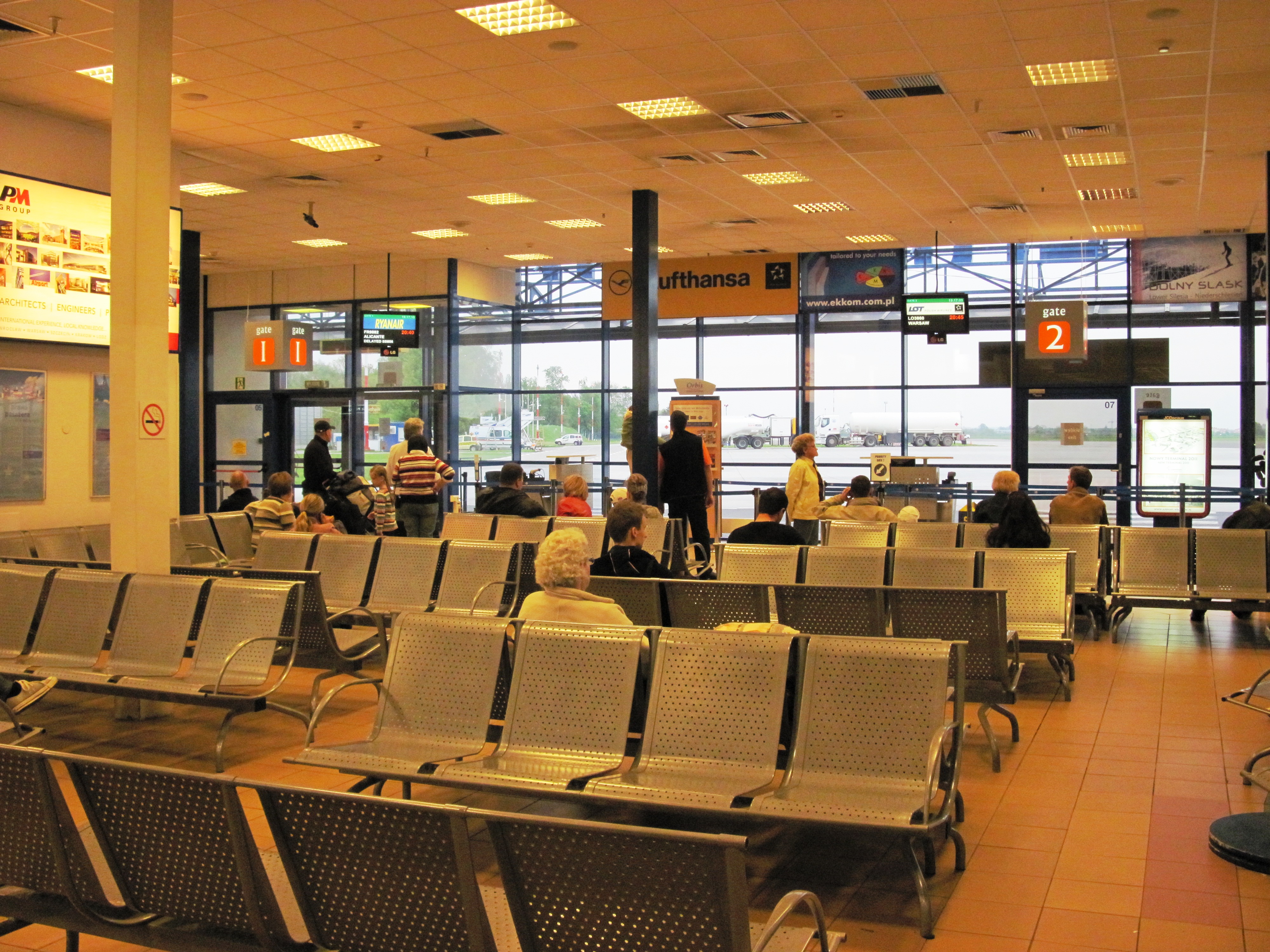 Вилет Визза с маленького накопителя (в котором есть всё нужное для ожидания). С аэропорта часто летает и Ryanair. Лот в основном на Варшаву + чартеры.