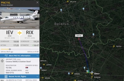 Прямо сейчас бизнес-джет с регистрацией Сербии летит Киев-Рига через Белорусь - ну и где санкции?