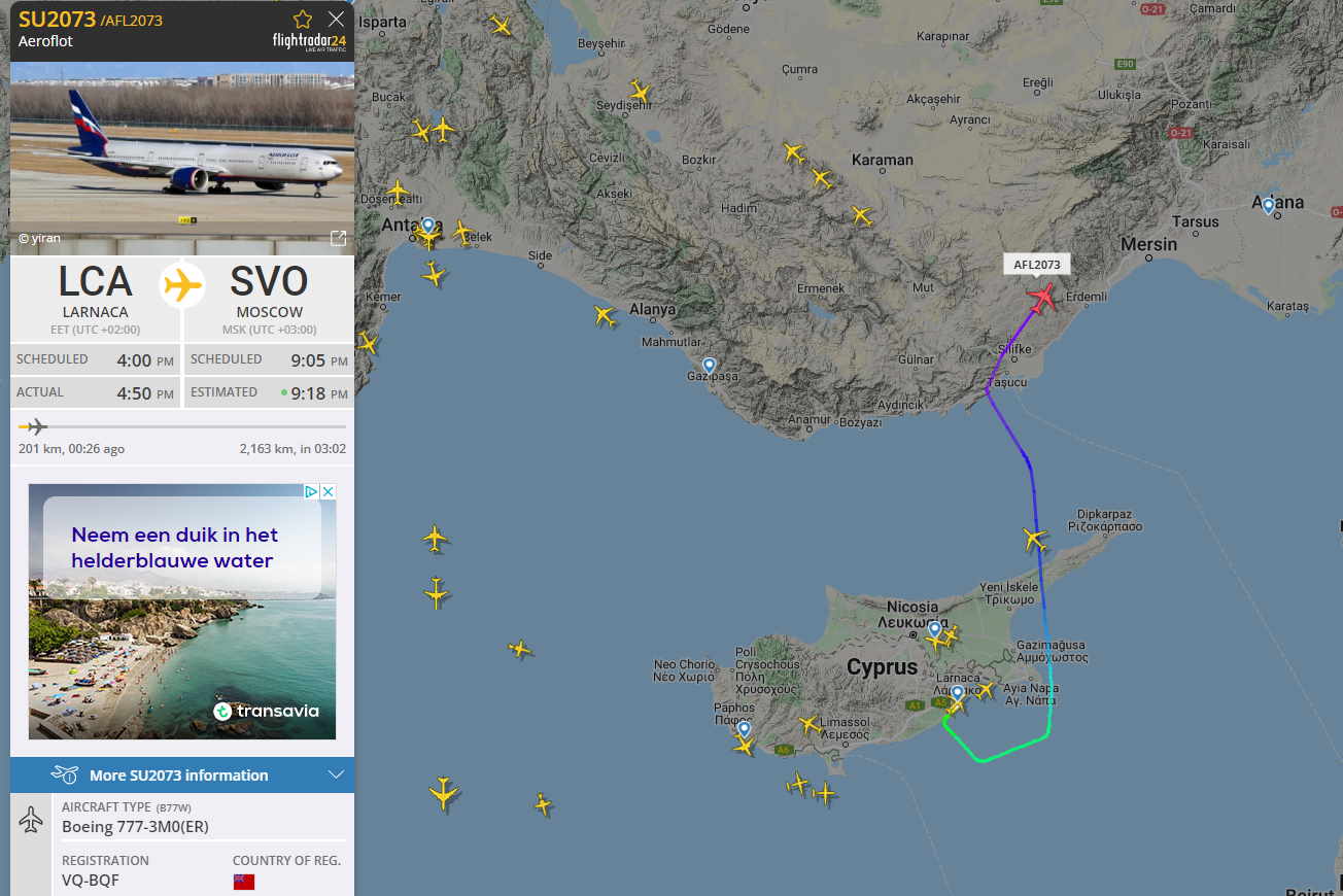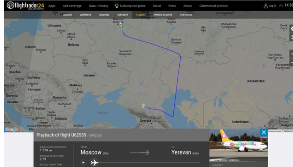 Апдейт до попереднього допису - зараз цей рейс повертається в Москву: