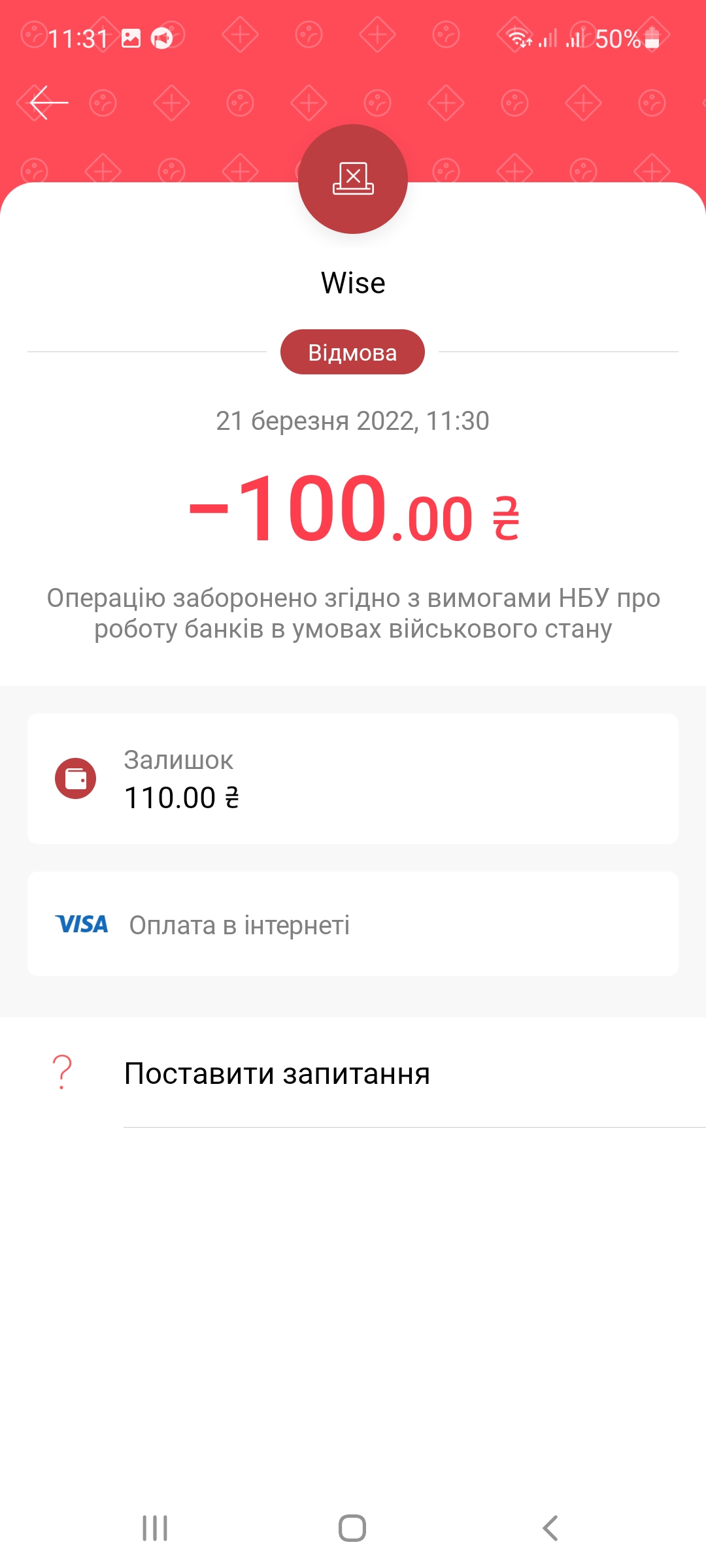 Транзакция начинается с "Purchase Return". И возврат через 11 дней произошел, при заморозке обычно 14 бывало. К тому же банк снял тогда и сейчас вернул "International purchase transaction fee". При заморозке у меня его не снимали. Я всех деталей конечно не вижу, но все указывает на списание и возвратSentry писав: ↑25 березня 2022, 11:15А точно деньги именно вернулись? Может быть такое, что за блокировкой не последовало списание в те сроки, которые ожидает банк и банк просто разморозил сумму. Ликпей просто спишет деньги чуть позже в таком случае. Ну а может у них проблемы с процессингом иностранных карт, но они об этом пока не знают.