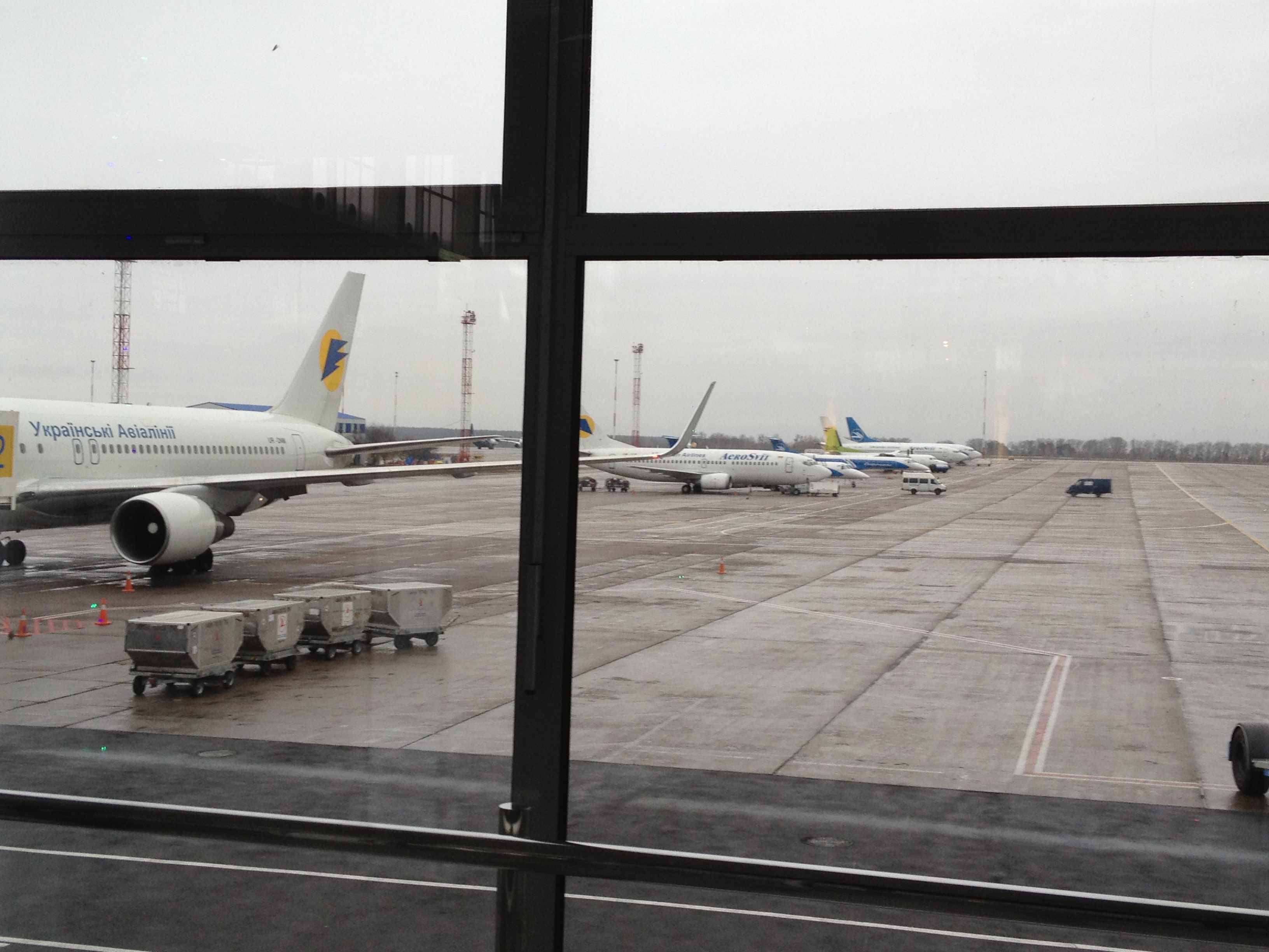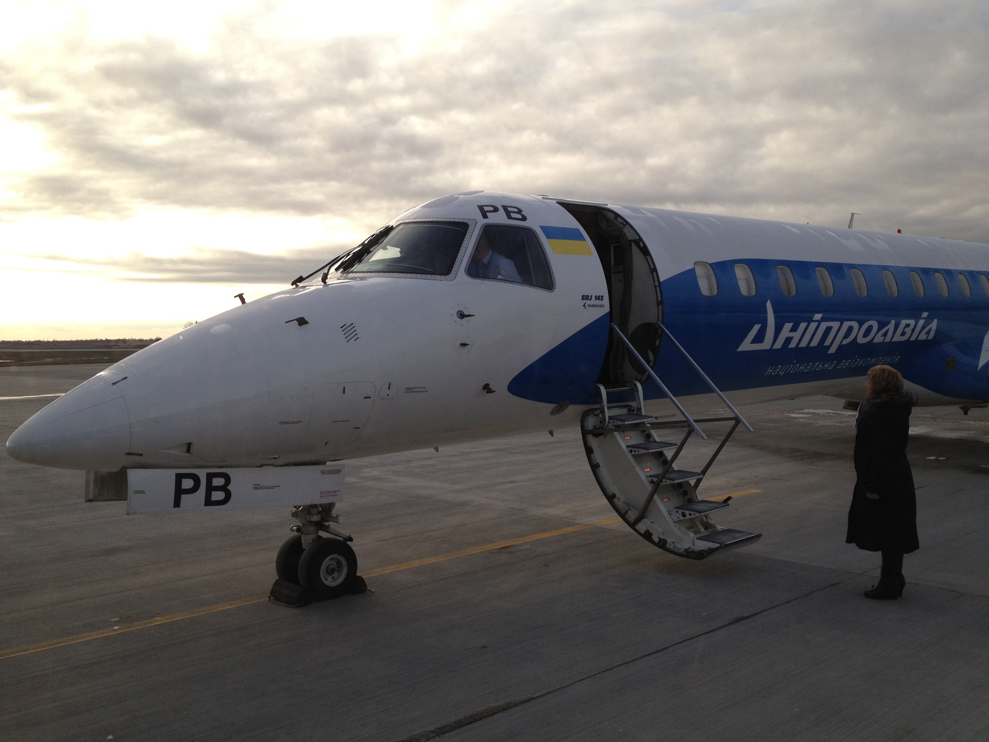 Наш самолет, а им предсказуемо оказался Эмбраер-145 Днепров, стоял на стоянке у нового терминала.