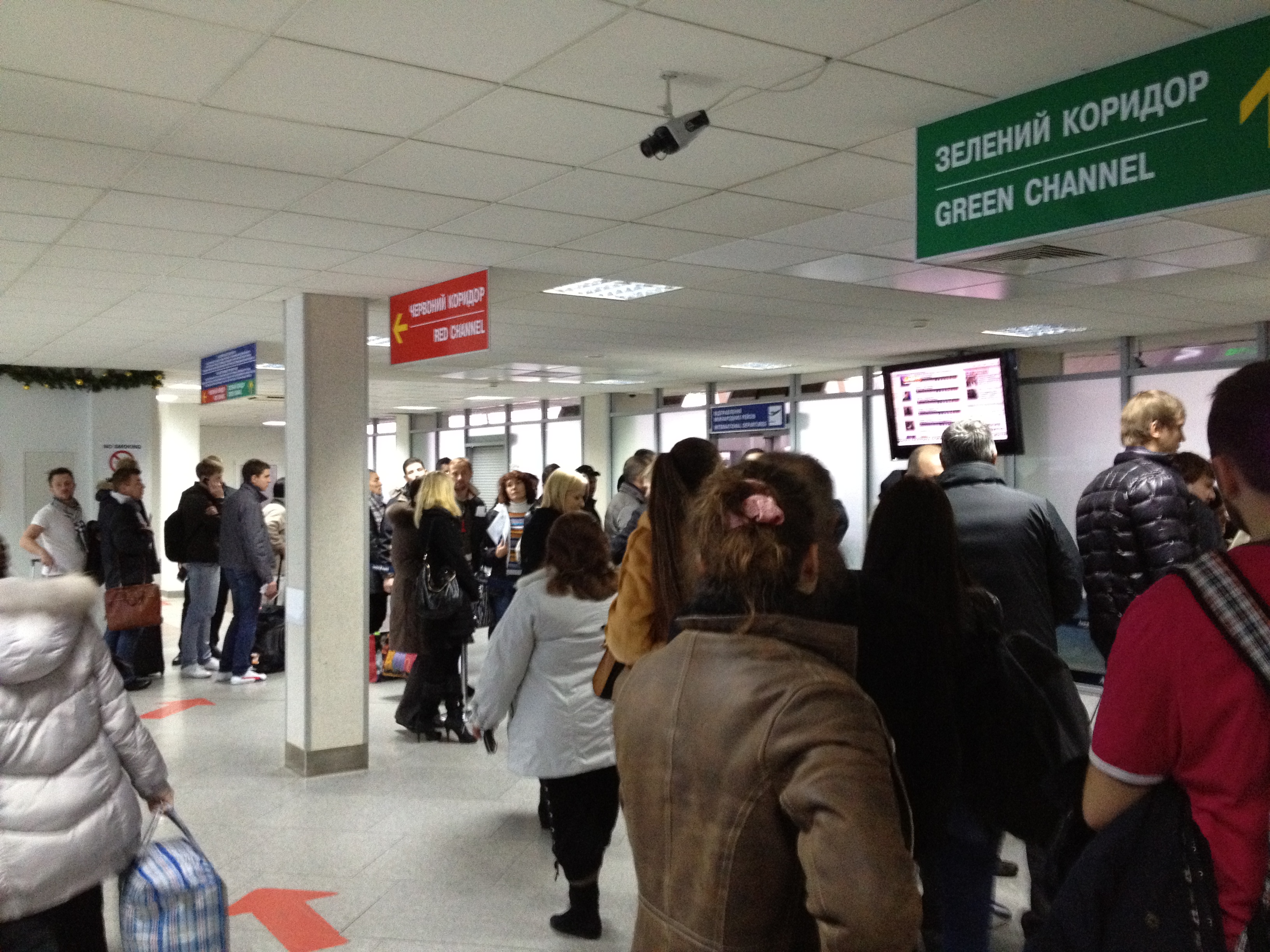 Очереди на секьюрити-чек тоже были приличные. Если стоять лицом к зоне досмотра, самая правая зона будет для внутренних рейсов. Вылет из Борисполя, рейс в Москву и посадка в Шереметьево завтра.