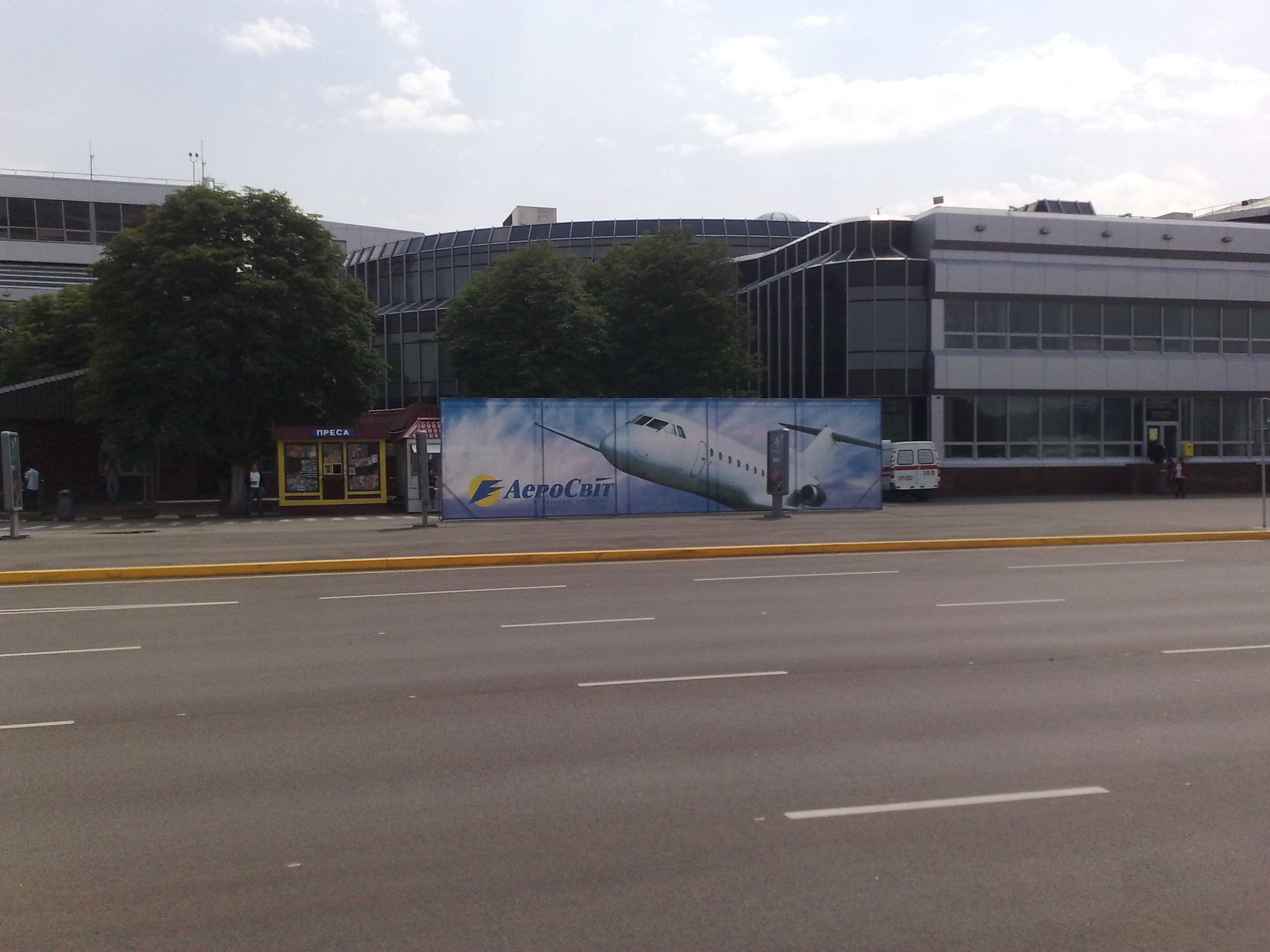 Неприглядные киоски закрыли баннерами Аэросвита))))))
