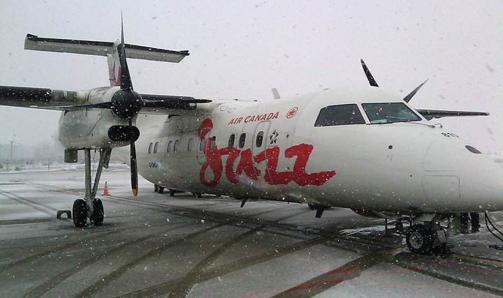 Вылетал из Лондона в Торонто рейсом Air Canada JAZZ , небольшой борт Dash 8- 100 , на 37 мест . Погода совсем нерадовала. Туман , снегопад и мороз и были большие шансы на перенос рейса .