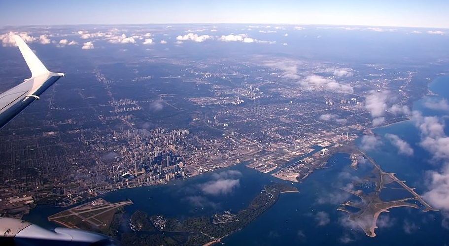 Туман , снег , фотки неполучились , поэтому прилагаю более позднюю весеннюю фотку с воздуха Торонто и городского аэропорта ......