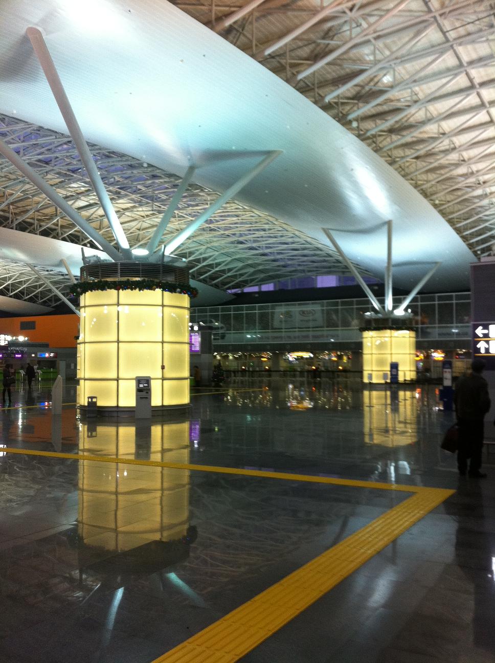 Итак, 2 января я сел в старый добрый ночной поезд номер 63 Харьков-Киев и под зловещий храп двух сокупейников доехал до столицы нашей страны. За 25 грн. доехал на Sky Bus до терминало Д аэропорта Борисполь. До начала регистрации еще было минут 30 и я ознакомился с впервые посещенным мною новым терминалом. Он мне понравился! Да, не совсем обжит, да, есть недостатки. Но! Это реальный шаг вперед с точки зрения аэропортовой инфраструктуры Борисполя. Постепенно он заполнится, обживется и будет чудо как хорош))