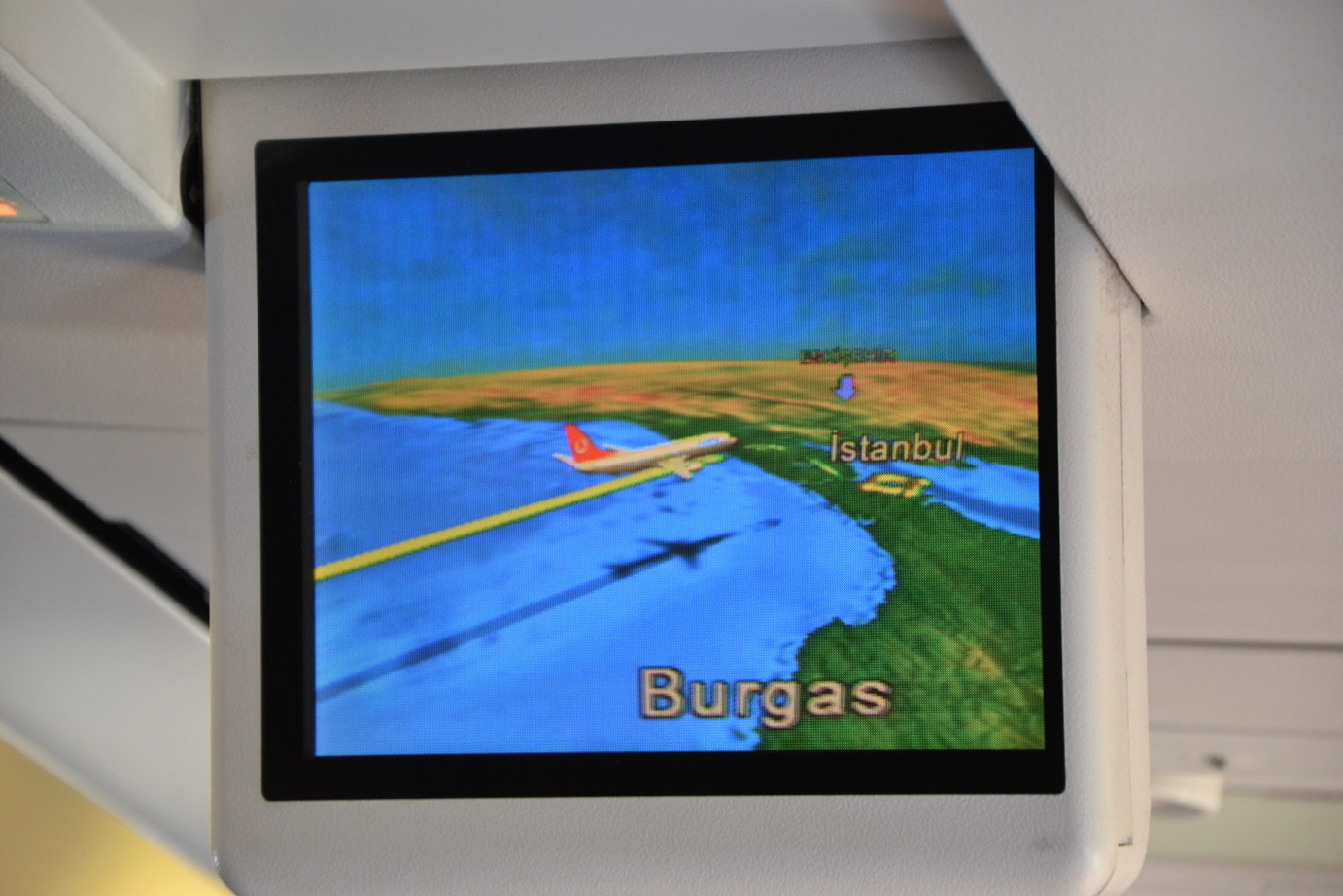 Цього разу до літака нас підвозили на автобусі, борт TC-JKJ Boeing 737-700 (2005 року випуску). Сидіння, як в економі, так і в бізнесі оббиті тканиною, але простору для ніг більше, ніж в 800-ці. Мультимедійна система не працювала взагалі, зате капітан під час польоту трохи розповідав про умови польоту. Стюардеси були якісь непривітні, ні добрий день, ні до побачення, не посміхались абсолютно.