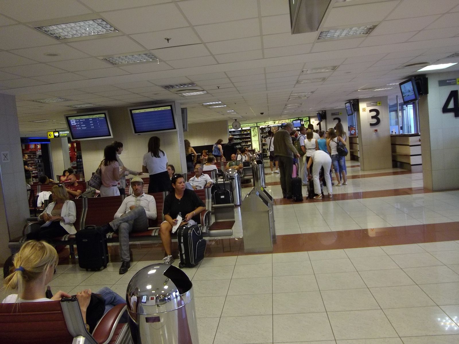 Термінал сподобався - невеликий, зате охайний, центральна зала з великою стелею, привітний персонал, оглядовий майданчик (!!!). Зручно дістатися з міста - з вокзалу Нюгаті (Nyugati, "західний", через напрямок відправлення потягів) потяги інтерсіті та електрички проїжджають аеропорт кожні, здається, 20 хвилин. Квиток коштує в межах 3 євро, точно не пам*ятаю. На відміну від джуліанського візза ніхто не примушував зважувати мій рюкзак (візу в паспорті теж не шукали).