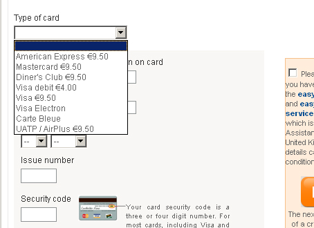 Кстати интересно что у easyJet при оплате берется ~4 евро за обрабоку платежа при оплате дебетной картой Виза, и ~9 евро при оплате кредитной картой Виза. Но явно дебетную карту Visa Classic от приватбанка, согласился принять только когда я выбрал что карта кредитная. Абсолютно не понятно, каким образом их можно отличить, вроде номера задаются по одинаковому принципу что для первых что для вторых.