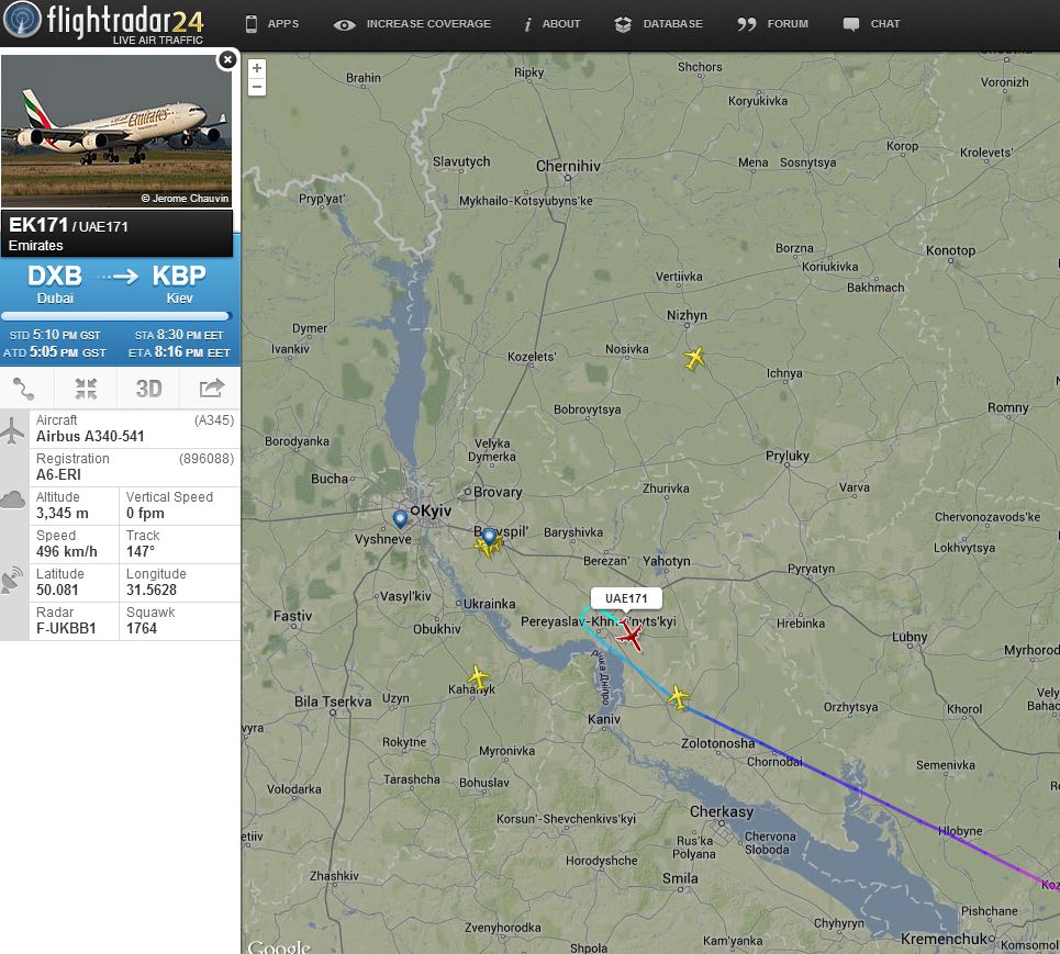 (К сожаленью, не знаю как сделать "снимок" с Флайтрадара).