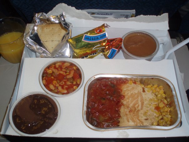 У меню - рис з овочами та куркою, пудинг, паста з овочами, пюре з фруктів, халва, крекер... Багато, але не дуже смачно... Але наїстися можна легко.
