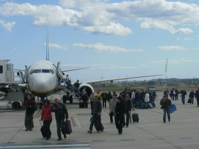 Коли прилетів у Жирону, то трапу не було, відповідно була майже ніч, пасажири не знали куди іти з літака. До аеропорту було метрів 200, якщо не більше, відповідно була гарна прогулянка між 4-5 літаками інших раянів, які чекали на паксів. Лише на горизонті був дядько який махав ліхтарем, відповідно на нього всі пасажири і йшли.