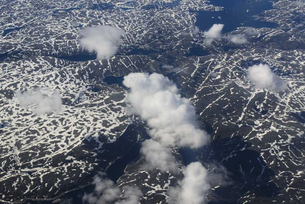 Норвежские фьорды во время перелета из Осло в Ставангер и обратно.