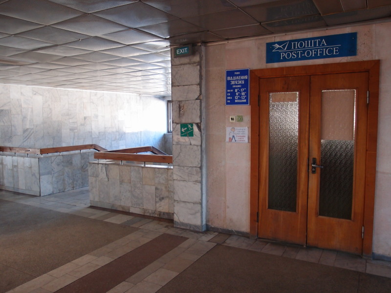 Поднялись на второй этаж. Лестница находится за рекламным щитом, в котором есть калитка. Наврху огромное пустое пространство. Резной потолок с красивой люстрой. Есть почтовое отделение (не проверял работает ли). Открываются виды на перрон и площадь перед терминалом.