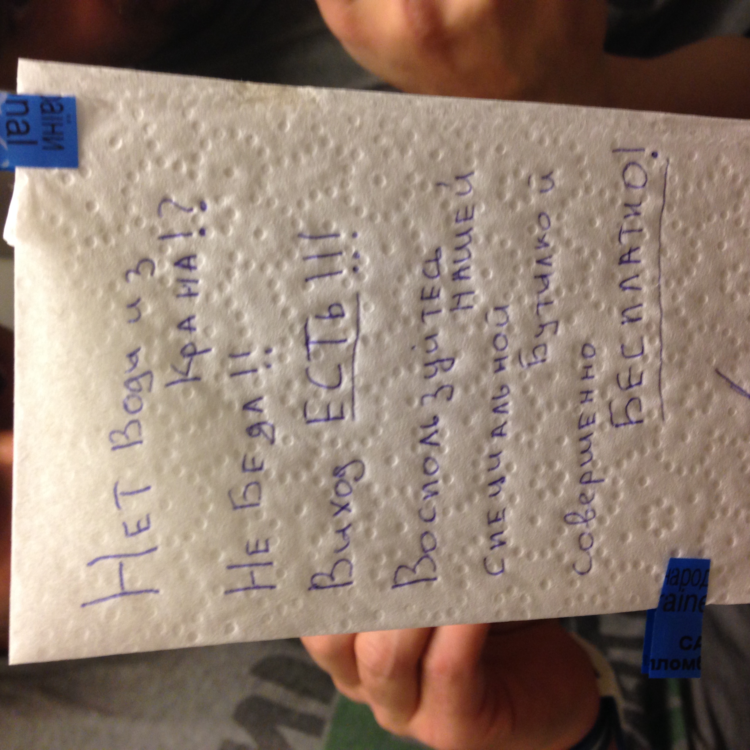 Единственно, и туда, и обратно (разные самолеты) не было воды в умывальнике в туалете в экономе, положили влажные салфетки и бутылку воды для мытья рук. На фото: троллинг пассажира.