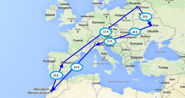 Киев – Будапешт – Милан – Марракеш – Мадрид – Вильнюс – Киев за 128 € (3 459 грн)